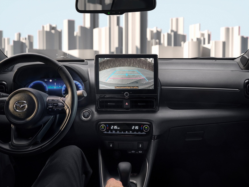 Mazda2 Hybrid vor kunstvoller Kulisse