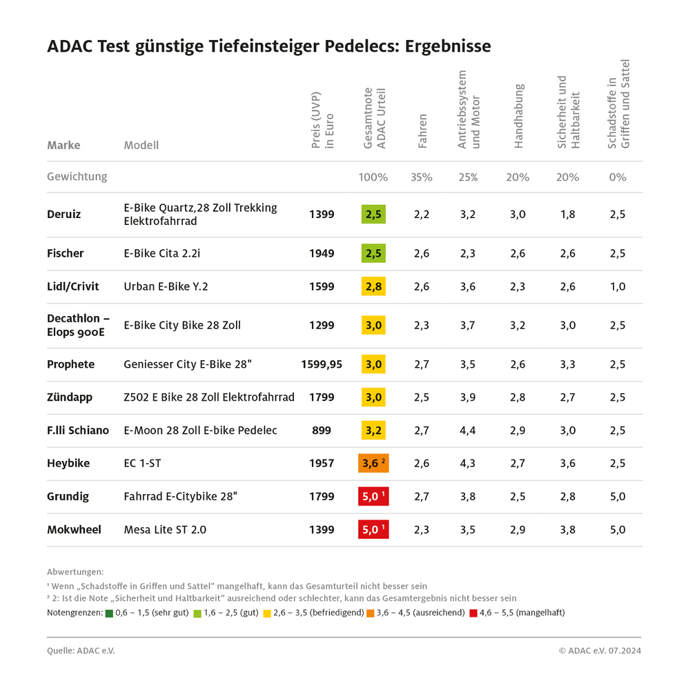 2,1 Millionen E-Bikes wurden im Jahr 2023 verkauft. Der ADAC testete nun Einsteiger-Modelle zu Preisen von unter 2.000 Euro. Das Ergebnis ist ernüchternd.