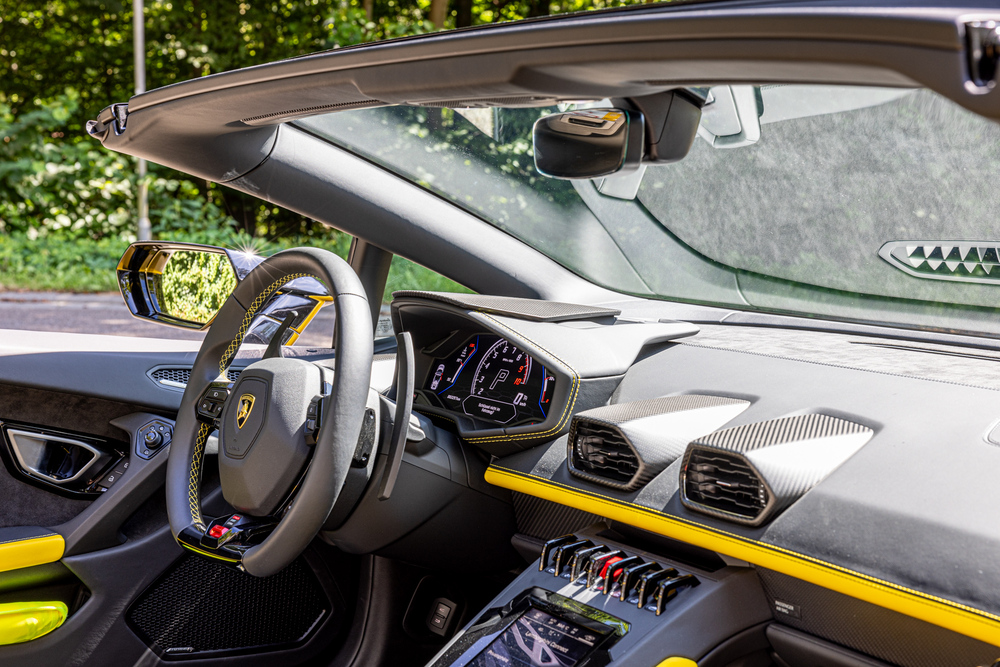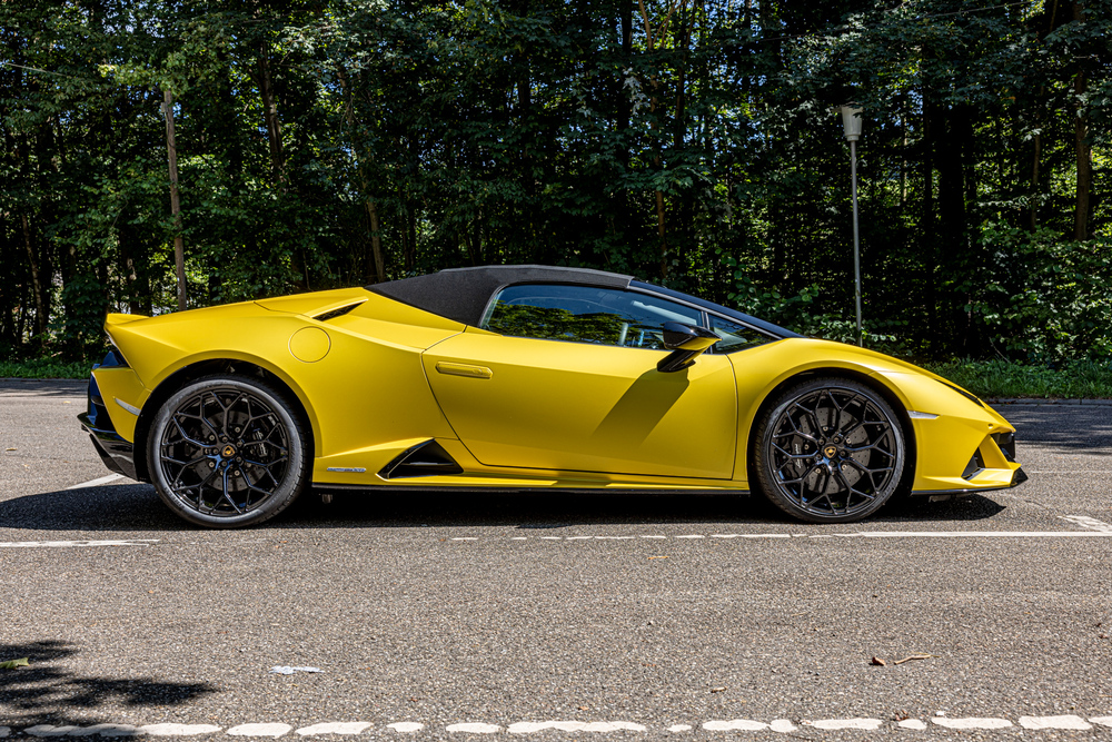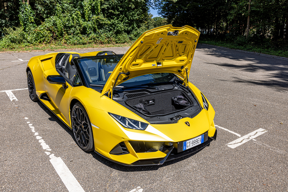 Man hat nicht alle Tage die Gelegenheit einen Lamborghini als Testwagen zu erhalten, wenn es dann noch ein Huracan Evo Spyder mit Stoff-Faltdach ist und das Wetter entsprechend mitspielt, tröstet dies auch über die kurze, viertägige Testphase hinweg. Wir starten die oben-ohne Sause bei Lamborghini in Düsseldorf und prüfen direkt die Langstreckentauglichkeit, der anzutretende Heimweg beträgt nämlich gute 300 Kilometer.