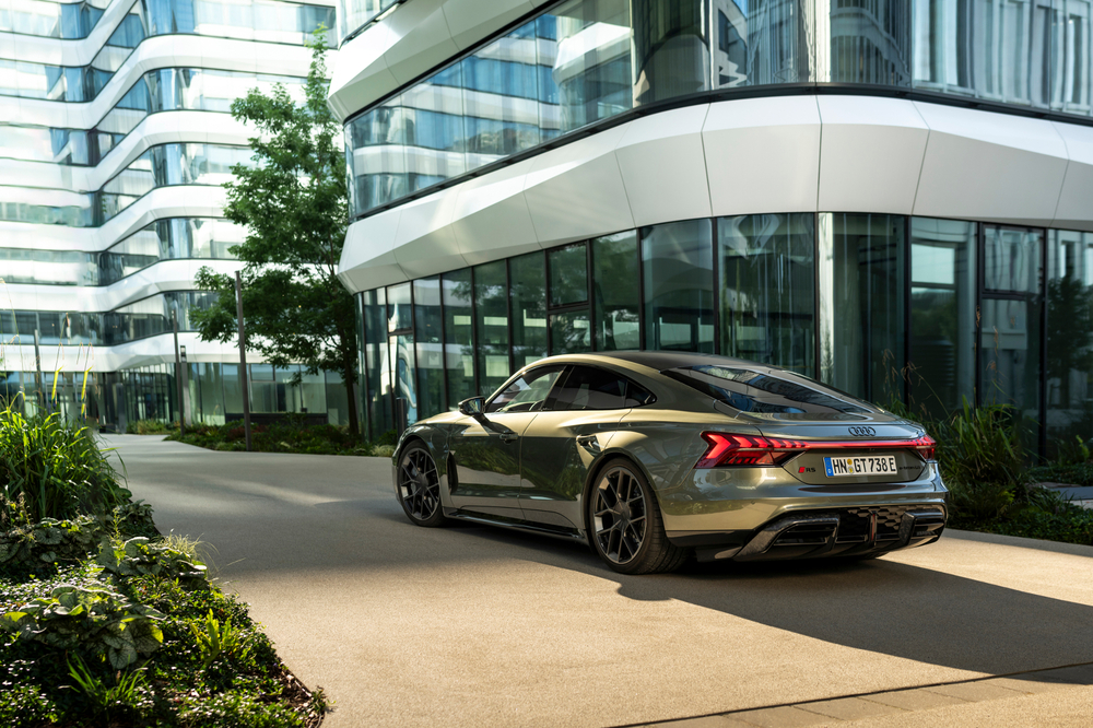 Er ist das leistungsstärkste Serienfahrzeug von Audi, der RS e-tron GT performance. Das viertürige Elektro-Coupe verfügt neben der permanentmagneterregten Synchronmaschine (PSM) an der Vorderachse mit verstärkten Gelenkwellen, die 252 kW/342 PS leistet, über einen neu entwickelten PSM an der Hinterachse mit einer Leistung von 415 kW/564 PS.