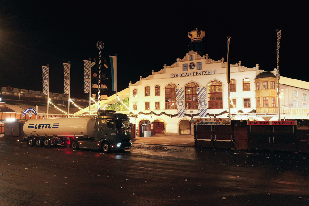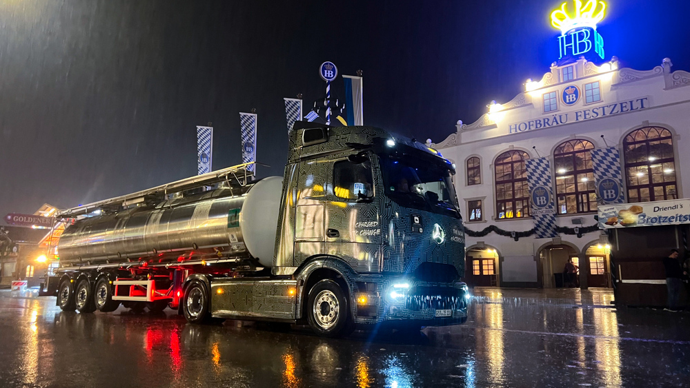 Nicht angezapft, sondern e-zapft ist es! Der Mercedes-Benz eActros 600 belieferte das Münchner Oktoberfest 2024 mit rund 82.000 Litern Bier und frischen Wiesnbrezn.