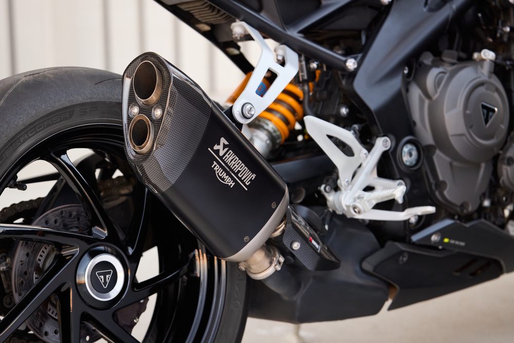Eigentlich ein Must-have: Der Auspuffendtopf von Akrapovic Foto: Triumph