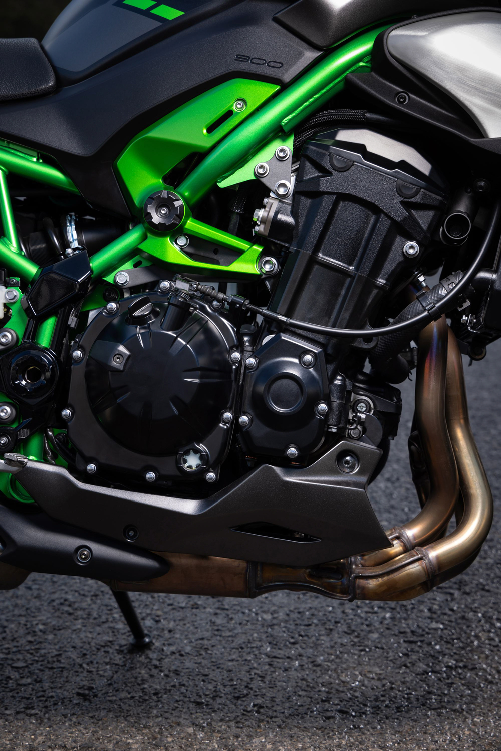 Zwischen den Oberzügen des markanten Gitterrohrrahmens sitzt der Reihenvierzylinder mit 948 Kubikzentimeter Hubraum Foto: Kawasaki