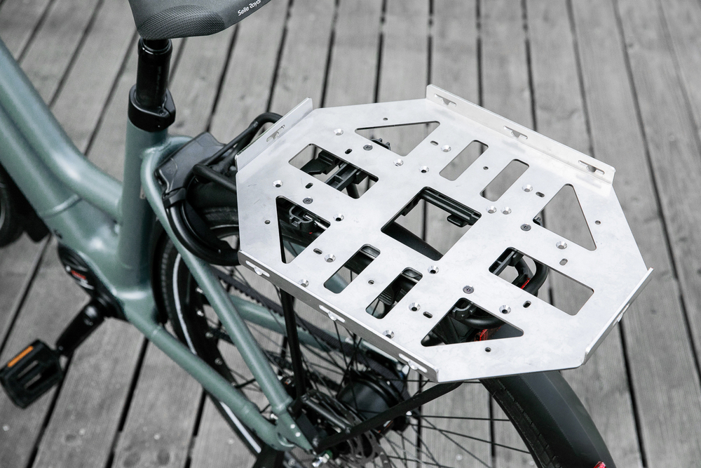 Mit der Gepäckträger-Plattform von Fahrer Berlin lassen sich schmale Gepäckträger für die Mitnahme von von Boxen optimieren Foto: Fahrer Berlin/pd-f