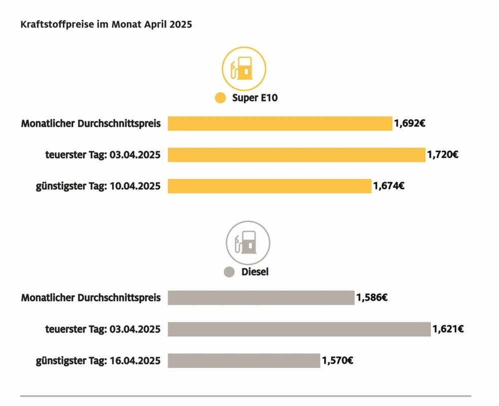 Die Kraftstoffpreise im April. Photo: ADAC via Autoren-Union Mobilität